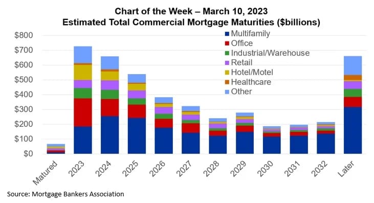 March 10, 2023 - Estimated Total Commercial Mortgage Maturities (billions)